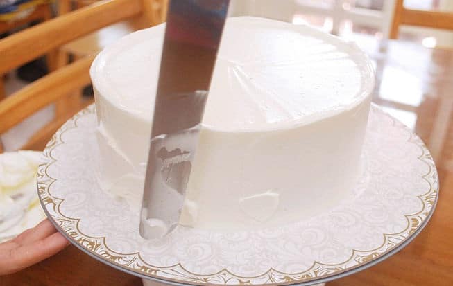 ادهني سطحها بالكريمة المتبقية بشكل متساوي، حتى تحصلي على سطح أملس من كل الجهات