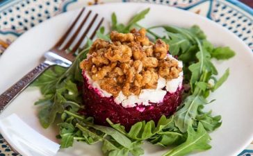 · قشري البنجر وقطعيه إلى مكعبات صغيرة جداً. · أضيفي إليه زيت الزيتون والخل البلسمي والملح والفلفل، حركي جيداً ثم...