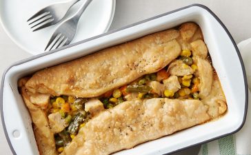 · افردي عجينة البيتزا أو البف باستري بشكل دائري ثم ضعيها في قالب خبز مدهون بالزيت وتأكدي أن جميع جهات...
