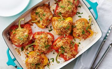· قطعي حبات الفلفل إلى نصفين وأزيلي البذور ثم اسلقيها في ماء مغلي لمدة دقيقتين وصفيها. · امزجي الدجاج مع...