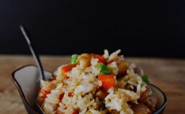 · سخنى مقلاة كبيرة غيرلاصقة على نار متوسطة تميل إلى العالية ثم ضعى ملعقة من الزيت ومكعبات الدجاج ويطهى لمدة...