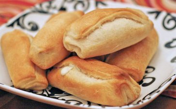 · افردي عجينة الكرواسون بشكل مستطيل ثم قطعيها إلى مستطيلات. · قومي بحشو كل مستطيل بأصبع من الجبن ولفي العجين...