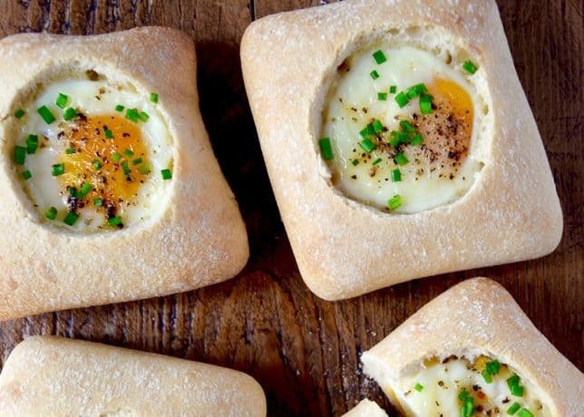• 6 رغيف خبز البرجر أو خبز انجليزي • 6 حبة بيض، كبير الحجم • 3/1 كوب مبشور جبن الشيدر • ثوم معمر مفروم • ملح وفلفل أسودطريقة التحضير :
