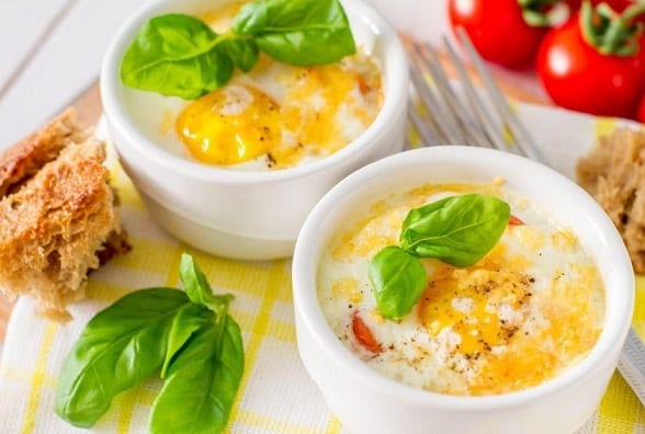 • 2 حبة بيض • 4 ملعقة كبيرة كريمة طهى • الخبز المحمص للتقديم • رشة ملح و فلفل أسود • بابريكا ( اختياري )طريقة التحضير :