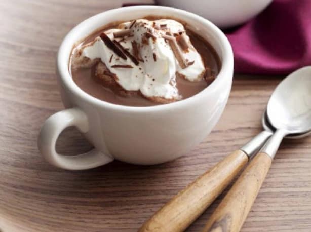 اسكبى الهوت شوكليت فى كوب التقديم وزينيه