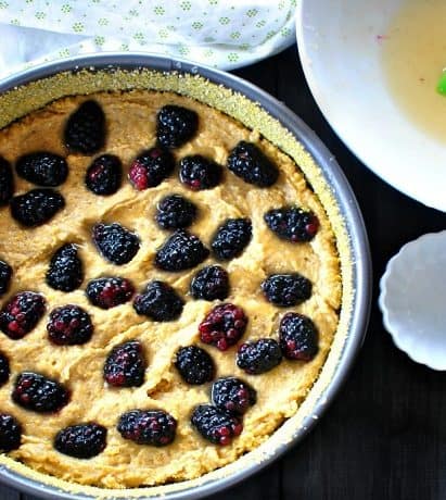 – اضيفي التوت بالعسل إلي وجه الكيك .