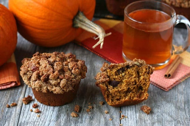 • 2 كوب طحين القمح الكامل • ½ ملعقة صغيرة ملح • 2/1 1 ملعقة صغيرة من القرفة • ½ ملعقة صغيرة جوزة الطيب • ½ ملعقة صغيرة زنجبيل • ¼ ملعقة صغيرة قرنفل مطحون • 1 ملعقة صغيرة بيكنج صودا • 1 ملعقة صغيرة بيكنج بودر • 1 كوب سكر بنى • ¼ كوب عسل • 2 حبة بيض • ¼ كوب زيت ( يمكن إستخدام زيت الأفوكادو ) • 1 ملعقة صغيرة فانيليا سائلة • 1 علبة هريس القرع • ½ كوب بيتر ميلك • 1 كوب رقائق الشوكولاته • ½ كوب جوز مفروم • مقادير طبقة الكرامبل :- • ½ كوب طحين أبيض أو طحين القمح الكامل • ¼ ملعقة صغيرة ملح • 1/3 كوب سكر بنى • ¼ ملعقة صغيرة قرفة • 1/8 ملعقة صغيرة جوزة الطيب • 1/8 ملعقة صغيرة زنجبيل • 1/8 ملعقة صغيرة قرنفل مطحون • ¼ كوب جوز مفروم • ¼ كوب زبدة فى درجة حرارة الغرفة