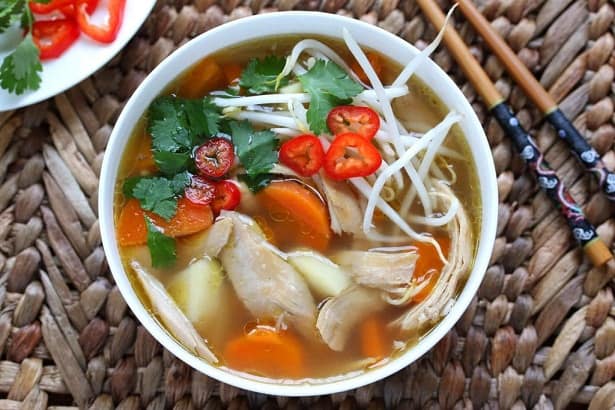• مقادير خلطة التوابل :- <br /> • 2 ملعقة كبيرة بذور الكزبرة <br /> • 1 ملعقة كبيرة بذور الكمون<br /> • 2 ملعقة صغيرة بذور الشمر<br /> • 2 نجمة يانسون<br /> • 4 قرن فلفل أخضر حار<br /> • 1/2 عصا قرفة مكسر<br /> • 2 قرنفل <br /> • مقادير أخرى :- <br /> • 1 حبة بصل أصفر صغير الحجم<br /> • 4 فص ثوم<br /> • 1 قطعة زنجبيل طازج<br /> • مقادير الحساء :- <br /> • 6 كوب مرق دجاج<br /> • 1 كيلو قطع دجاج بالعظم<br /> • 1 كيلو بطاطس متوسطة الحجم مقطعة مكعبات ( يمكن إستبدالها بالمكرونة )<br /> • 2 حبة جزر مقطع<br /> • 1 ملعقة صغيرة ملح<br /> • 1 عصير ليمونة <br /> • كزبرة خضراء و فلفل أحمر حار للتزيينطريقة التحضير :