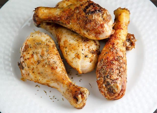 قدمي أفخاذ الدجاج المشوية ساخنة مع