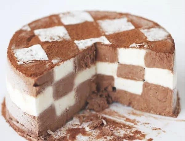 فى النهاية رشى على سطح تورتة الآيس كريم مسحوق كاكاو والسكر