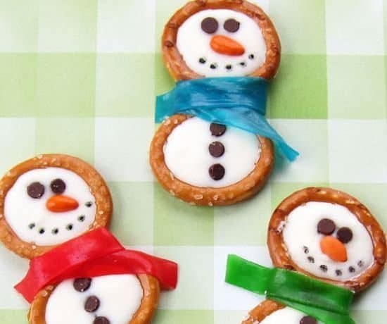 – شكلي ملامح سنو مان والأزرار باستخدام تشوكليت شيبس.