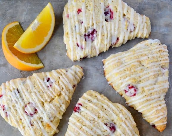 • 2/1 2 كوب طحين<br /> • 2/1 ملعقة صغيرة ملح<br /> • 4/1 كوب سكر<br /> • 4/1 2 ملعقة صغيرة بكينج بودر<br /> • 6 ملعقة كبيرة زبدة غير مملحة، باردة مقطعة مكعبات<br /> • 4/3 كوب كريمة سائلة<br /> • 2 حبة بيض، كبيرة الحجم<br /> • 2/1 1 ملعقة صغيرة فانيليا<br /> • 2 ملعقة كبيرة عصير برتقال<br /> • 1 كوب توت أحمر مفروم<br /> • 1 ملعقة كبيرة برش قشر البرتقال<br /> للصوص:<br /> • 2/1 1 كوب مسحوق السكر<br /> • 1 ملعقة كبيرة حليب كامل الدسم<br /> • 2/1 2 ملعقة صغيرة عصير برتقال<br /> • 2/1 1 ملعقة صغيرة زبدة مذابة<br /> • 1 ملعقة صغيرة برش قشر البرتقالطريقة التحضير :