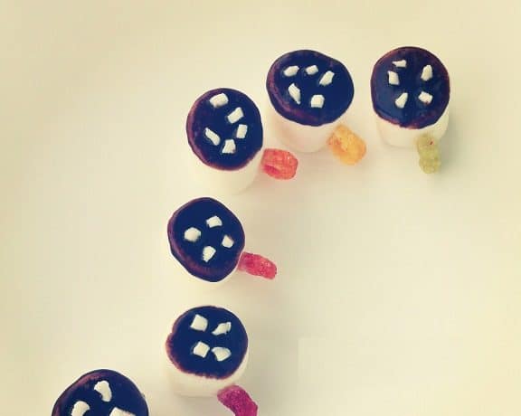 قومى بعمل ثقب فى حبات المارشيملو وأدخلى فيه العود أو