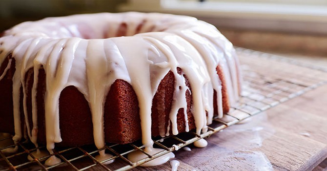 · باستخدام معلقة وزعي صوص البرتقال علي الكيكة واتركيها تتخلص من الفائض .