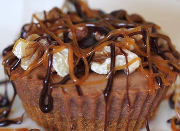 صينية الكب كيك المبطنة بورق الزبدة الخاص بها مع الضغط قليلاً إلى أسفل .