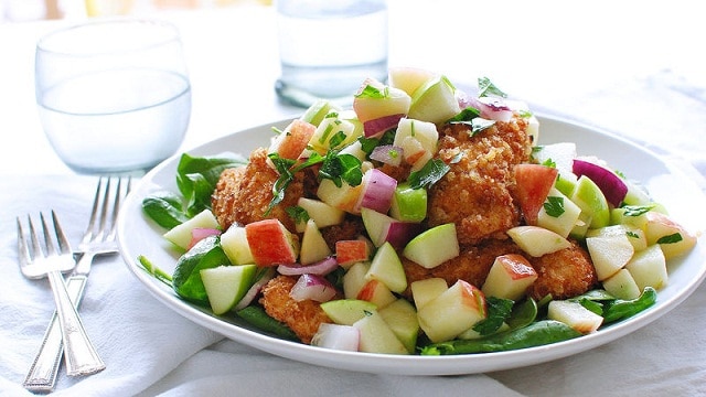 – تناولي سلطة تشكين كرسبي بالتفاح كوجبة عشاء خفيفة ولذيذة، صحتين وهنا.