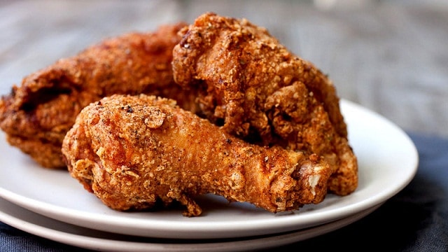 اقلي قطع الدجاج في زيت ساخن عميق على نار