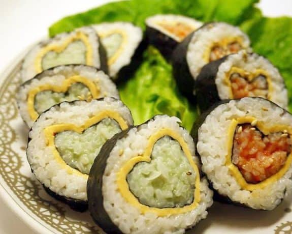 جهزى بنفسك بوفيه السوشى اللذيذ على شكل قلب للفالنتين .