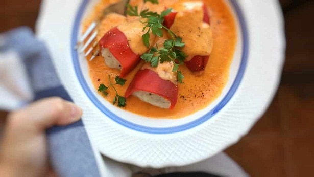 قدمى طبق الفلفل المحشى بالسمك وهو ساخن كطبق رئيسى أو