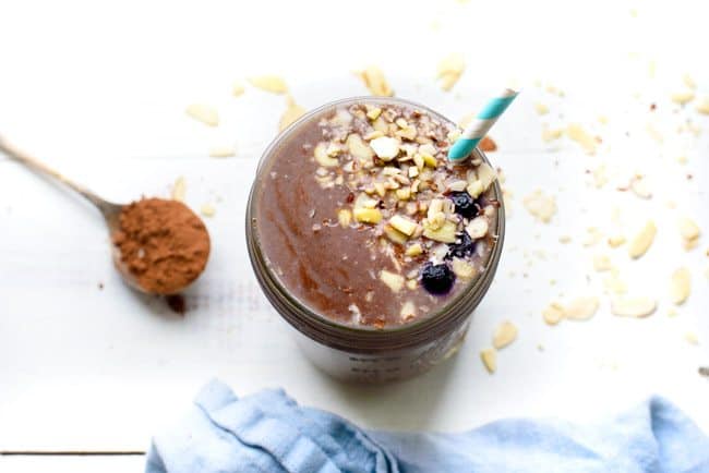 • 1 كوب بوريه فاكهة الآساي • 1 حبة موز مجمد • 2 ملعقة صغيرة مسحوق الكاكاو • 2/1 كوب حليب اللوز، غير محلى • 4/1 كوب توت مجمد • عسل أو رحيق جوز الهند أو سكر دايت، حسب الذوقطريقة التحضير :