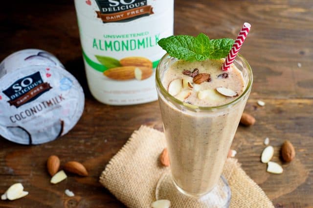 • 2/1 كوب حليب اللوز غير محلى<br /> • 2/1 كوب زبادي بالفانيليا<br /> • 1 ملعقة كبيرة عسل<br /> • 1 قرصة جوزة الطيب<br /> • 1 قرصة قرفة<br /> • 2/1 ملعقة صغيرة بذور الشيا، منقوع في الماء لمدة ليلة كاملة<br /> • 1 ملعقة صغيرة كاكاوطريقة التحضير :