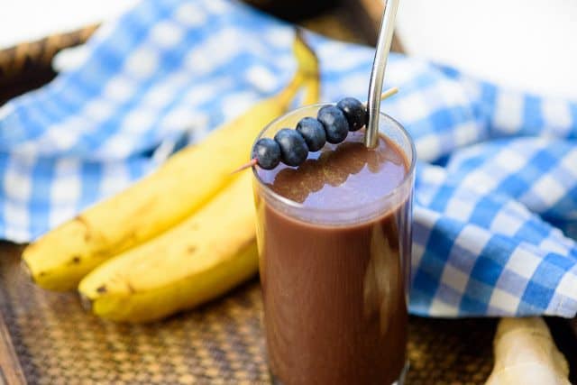 • 3/2 كوب ماء جوز الهند • 4/1 – 2/1 كوب بوريه ثمرة الآساي • 1 حبة موز مجمد • 1 ملعقة صغيرة كاكاو خام • 4/1 ملعقة صغيرة زنجبيل طازج مبشور