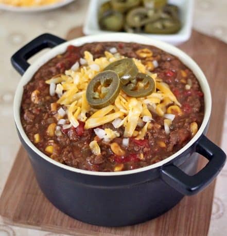 • ½ كيلو لحم مفروم معصج • 2 علبة فاصوليا حمراء معلبة • 1 علبة مكعبات طماطم • 1 علبة صلصة طماطم • 1 ملعقة كبيرة من التوابل المشكلة • 1 ملعقة صغيرة صلصة تابسكو أو صلصة حارة • 2 ملعقة صغيرة بودرة ثوم • 1 كوب مكعبات بصل • 1 ملعقة صغيرة بودرة بصل • 1 ملعقة كبيرة صلصة رسيستير شاير • 4 ملعقة صغيرة مسحوق الفلفل الأحمر الحار • ½ ملعقة صغيرة مسحوق الخردل • 1 ملعقة صغيرة قرفة • 2 كوب حليبطريقة التحضير :