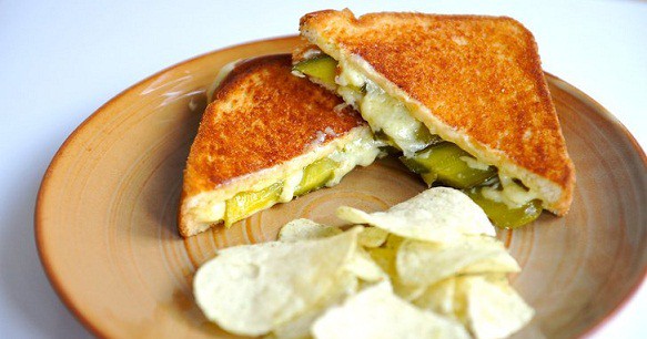 - 2 شريحة خبز أبيض (توست)<br /> - شرائح جبن كرافت<br /> - شرائح خيار مخلل<br /> - زبدة