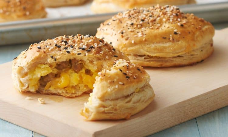 · قدمي فطائر البيض بالسجق دافئة أو باردة حسب الرغبة، صحتين وهنا.