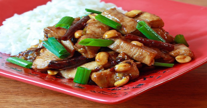 • 1 كيلو صدور دجاج أو أفخاد دجاج بدون جلد وعظم مقطعة الي مكعبات متوسطة الحجم • 2 معلقة كبيرة زيت الفول السودانى أو زيت زيتون • 8 :10 فلفل أحمر حار المجفف (شيلى) مقطع الي قطع كبيرة • 5 بصل أخضر مقطع الي شرائح • 2 فص ثوم مفروم • 1 معلقة صغيرة زنجبيل طازج مفروم • 1/2 كوب فول سودانى غير مملح ومحمص • 1 معلقة كبيرة صلصة الصويا (صويا صوص) • 2 معلقة صغيرة رقائق الفلفل الأحمر الحار المجفف • 1/2 معلقة صغيرة نشا الذرة • للصوص :- • 1/2 كوب خل بلسمك • معلقة ونصف كبيرة صلصة الصويا • معلقة ونصف كبيرة صلصة هويصين • معلقة ونصف كبيرة زيت السمسم • 2 معلقة كبيرة سكر • 2 معلقة صغيرة نشا الذرة (كورن فلور)طريقة التحضير :