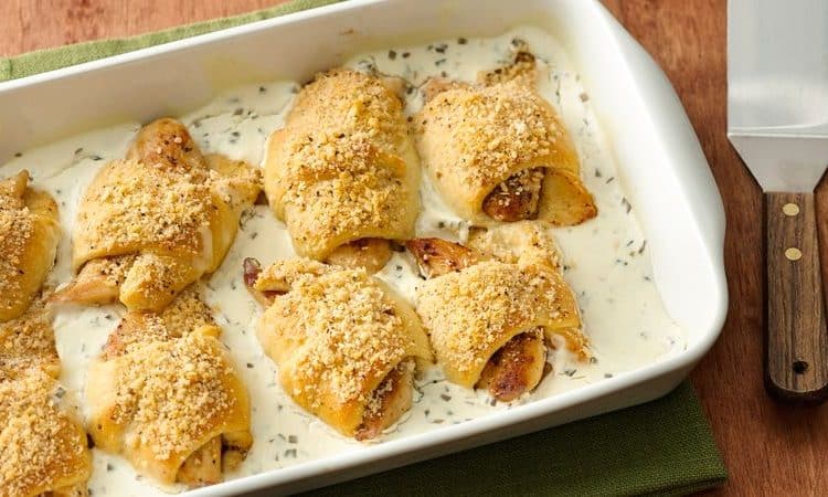 · قدمي الكرواسون بالدجاج وصلصة الجبن دافئاً وبالهنا والشفا.