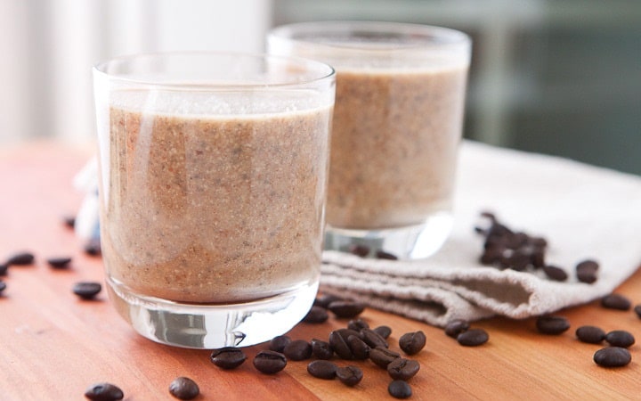 • 4/3 كوب قهوة فورية قوية، مجمدة • 1 حبة موز • 1 كوب ماء جوز هند • 2/1 كوب جرانولا • 4 ملعقة كبيرة بذر الكتان • 2 ملعقة كبيرة بذر الشياطريقة التحضير :