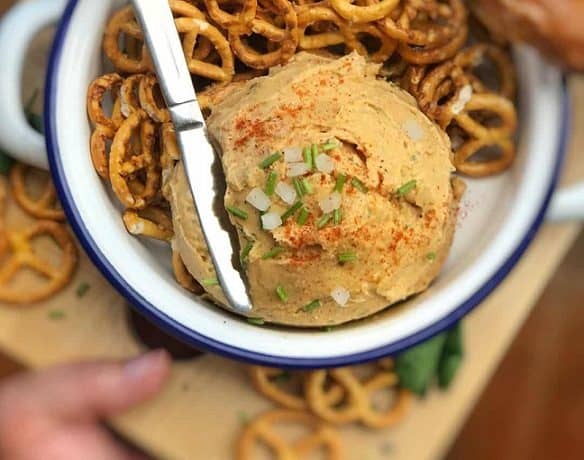 وقدميه مع البريتزل المملح أو الخبز كوجبة خفيفة .