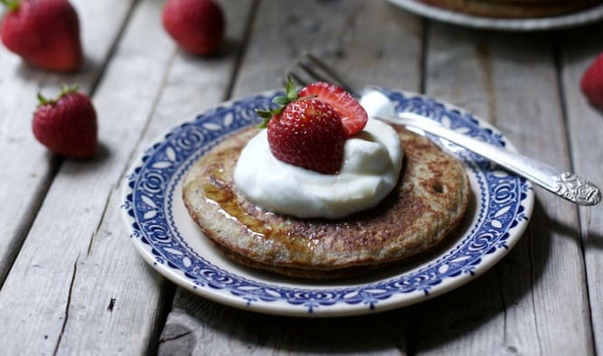 • 2 حبة موز ناضجة، مهروسة • 2 كوب حليب • 2 حبة بيض • 2/1 كوب لوز، منقوع في الماء طوال الليل • 2/1 1 كوب شوفان • 2/1 كوب طحين القمح الكامل • 2/1 ملعقة صغيرة قرفة • 2/1 ملعقة فانيليا • 1 قرصة ملح