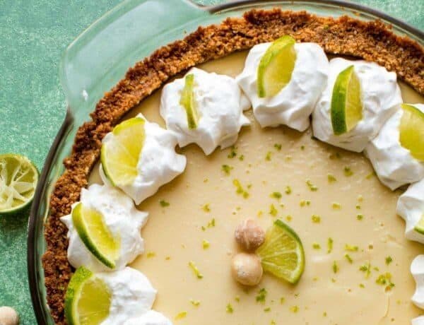 • مقادير طبقة البسكويت :- • 135 جرام بسكويت مطحون • ½ كوب ( 62 جرام ) جوز محمص • 1 ملعقة كبيرة سكر • 5 ملعقة كبير ( 72 جرام ) من الزبدة المذابة • مقادير حشوة الليمون :- • 2 علبة ( 14 أوقية لكلا منهما ) من الحليب المكثف المحلى • 1 كوب ( 240 مل ) من عصير الليمون البلدى • 4 حبة صفار كبير الحجم • للتزيين : زبدة الليمون – شرائح ليمون – مكسرات – كريمة مخفوقة – مارينجطريقة التحضير :