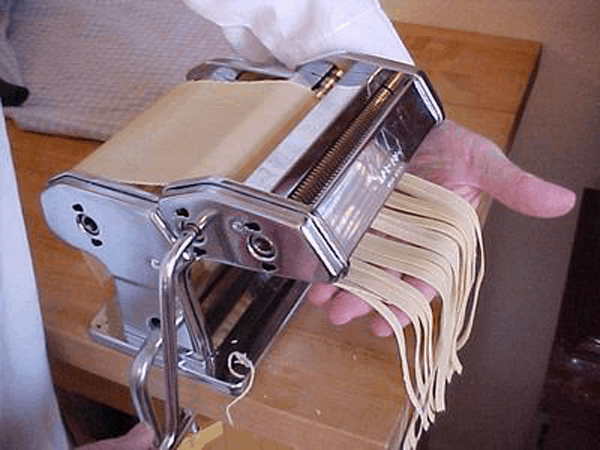 6- نقوم بتثبيت آلة المكرونة فى السطح الذى نعمل عليه