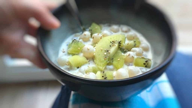 ضعى مكان التابيوكا فى نفس الوعاء حليب جوز الهند أو