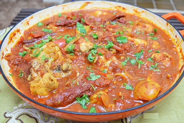 يطلق على هذه الوصفة إسم دجاج باسكيز وهو طاجن فرنسى