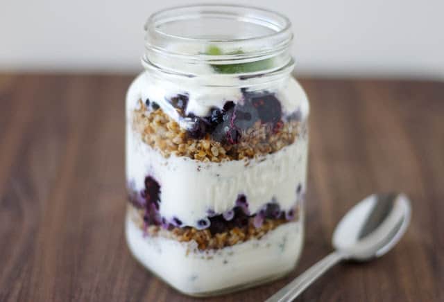 طبقة من الريكوتا ثم الشوفان ثم التوت، وكرري ذلك حتى نهاية الكأس.