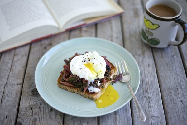 للتقديم: ضعي كمية سخية من سوتيه ورق البنجر فوق البيض
