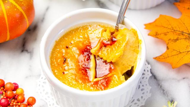 قدمي كريم بروليه القرع في الخريف الدافئ، صحتين وهنا.