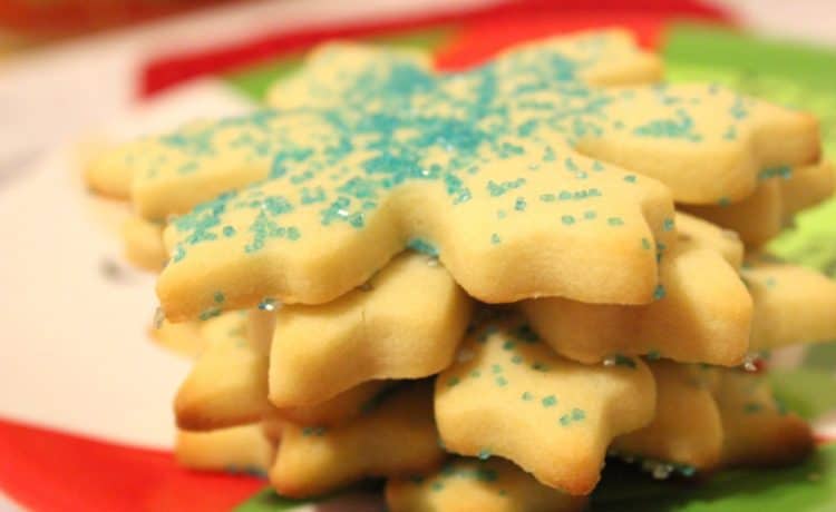 - 2/1 2 كوب طحين - 1 كوب زبدة لينة - 4/3 كوب سكر ناعم - 1 حبة بيض - 1 بياض بيض - 2/1 ملعقة صغيرة ملح - 1 ملعقة صغيرة فانيليا سائلة - 2/1 كوب سكاكر ملونة للتزيينطريقة التحضير :