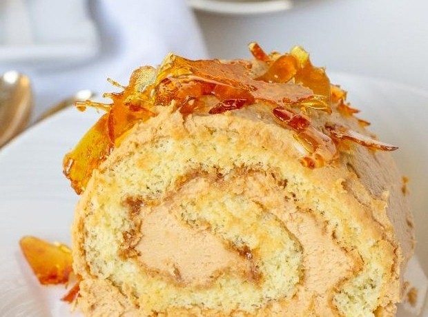 زيني الكيك رول بالكراميل المكسر أو المكسرات حسب الذوق.