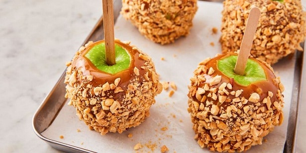 للتفاح بالكراميل وهو من الحلويات الخريفية المناسبة جداً للهالوين .