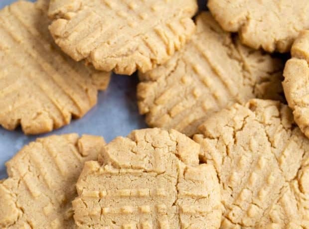• 3/1 1 كوب طحين • 1 ملعقة صغيرة بكينج صودا • 2/1 ملعقة صغيرة بكينج بودر • 2/1 كوب زبدة غير مملحة • 2/1 كوب سكر • 2/1 كوب سكر بني • 4/3 كوب زبدة فول سوداني • 1 حبة بيضطريقة التحضير :