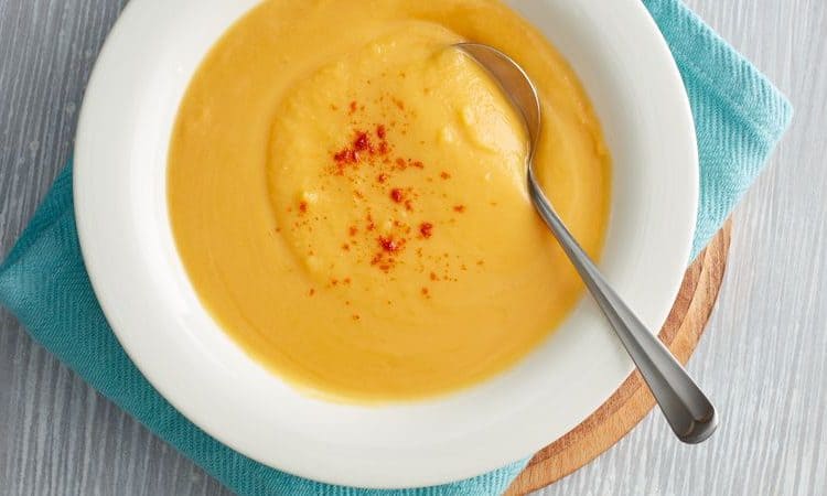 • 6 كوب مكعبات الاسكواش • 1 حبة تفاح كبيرة الحجم، مقشرة ومقطعة مكعبات • 2/1 كوب بصل مفروم • 1 ملعقة صغيرة ملح • 8/1 ملعقة صغيرة فلفل أحمر مطحون • 4/1 1 كوب مرق الدجاج • 2/1 كوب كريمة لبانيطريقة التحضير :