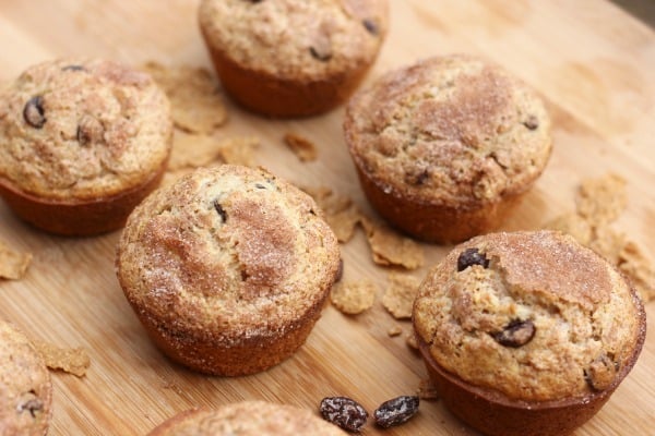 • 4/1 1 كوب من الطحين • ½ كوب سكر • 1 ملعقة كبيرة بيكنج بودر • ½ ملعقة صغيرة ملح • 1 ملعقة كبيرة سكر • ½ ملعقة صغيرة قرفة • 3 كوب رقائق الكورن فليكس البنى بالزبيب ( بران ) • 4/1 1 كوب من الحليب • 1 بيضة • ¼ كوب زيت نباتى • ½ كوب رقائق الشوكولاتهطريقة التحضير :