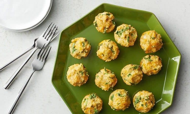 • 1 كوب كينوا مطبوخة • 2/1 كوب مبشور جبن شيدر أو الموتزاريلا • 2 بياض بيض • 1 فص ثوم مفروم • 1 ملعقة صغيرة ملح • 3/1 كوب أوراق السبانخ المفروم • زيتطريقة التحضير :