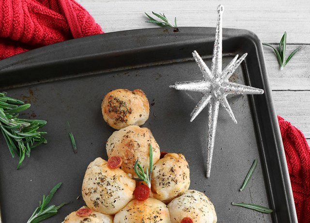 قدمي بيتزا شجرة الكريسماس مع صلصة مارينارا الدافئة وزينيها