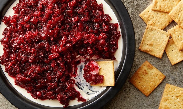 قدمي غموس الجبن بالتوت البري على سفرة الكريسماس مع